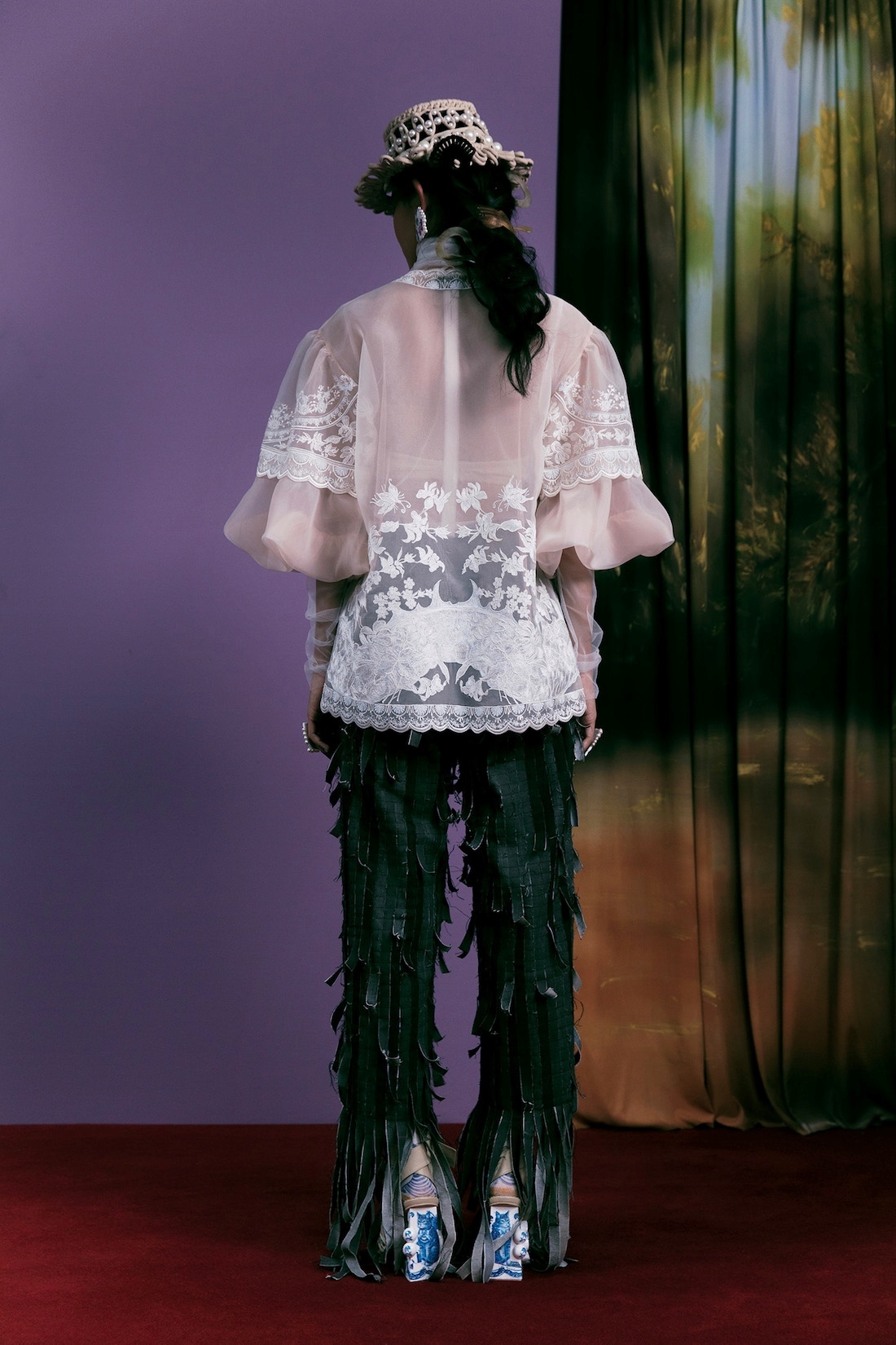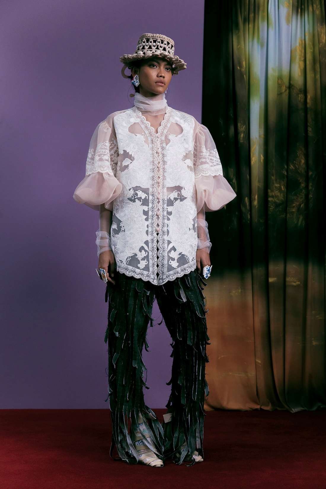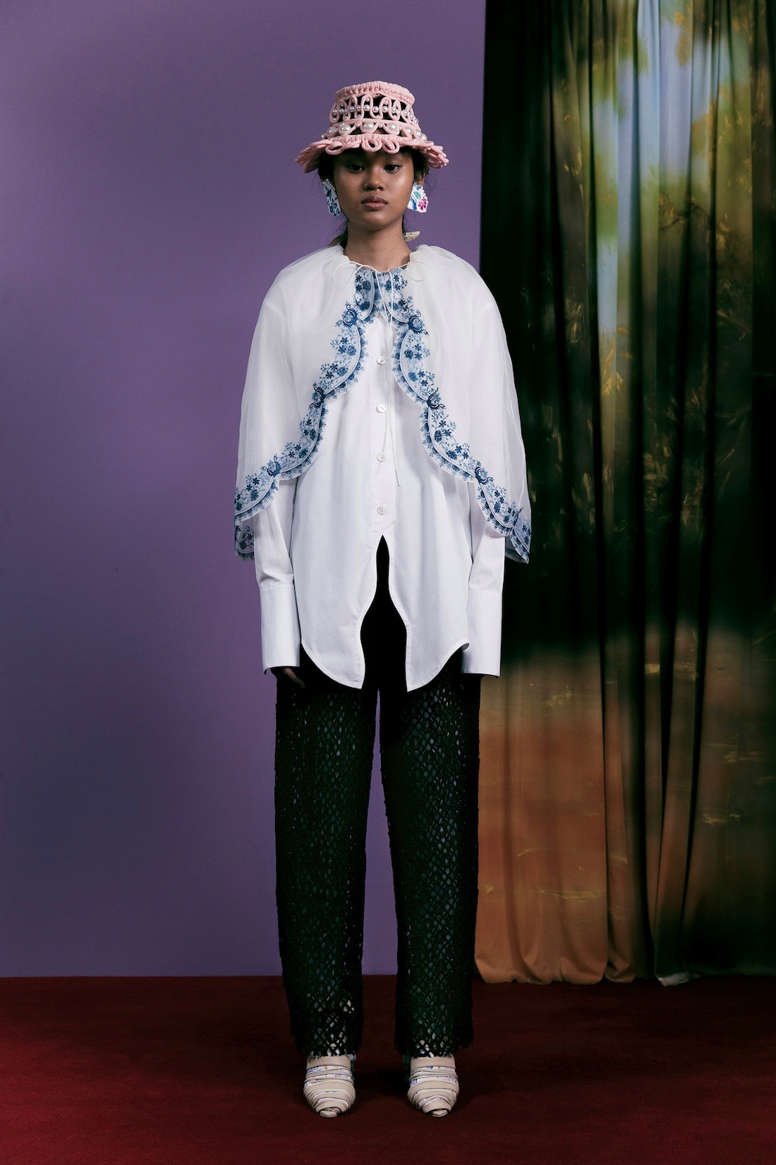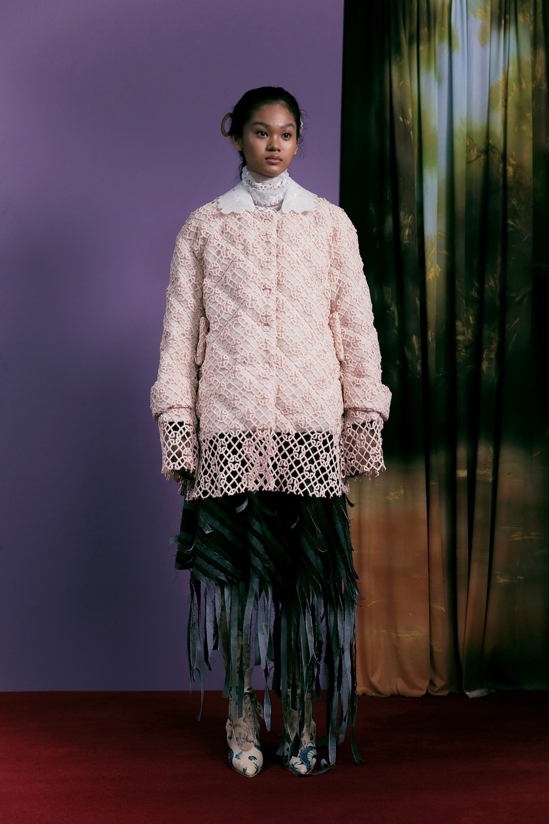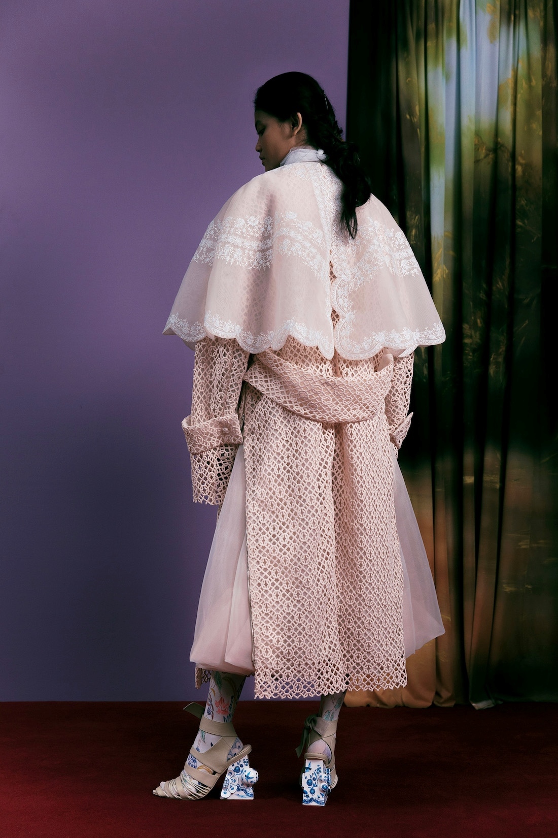 Details from previous collection are reconsidered and reworked. Cocoon Silhouettes, Cape, Overlay Details from Fall/Winter 2018 and 2019, macrame hats and belts - elements found throughout our Spring/Summer 2016, and padding quilting techniques from Fall/Winter 2020.