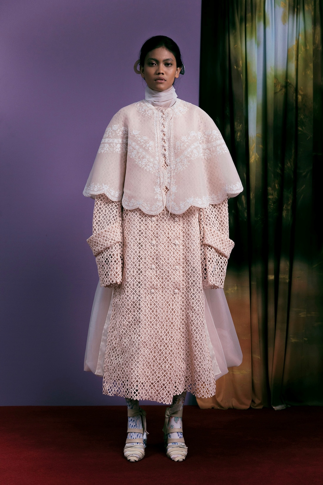 Double-Breasted Kawung Lace Coat